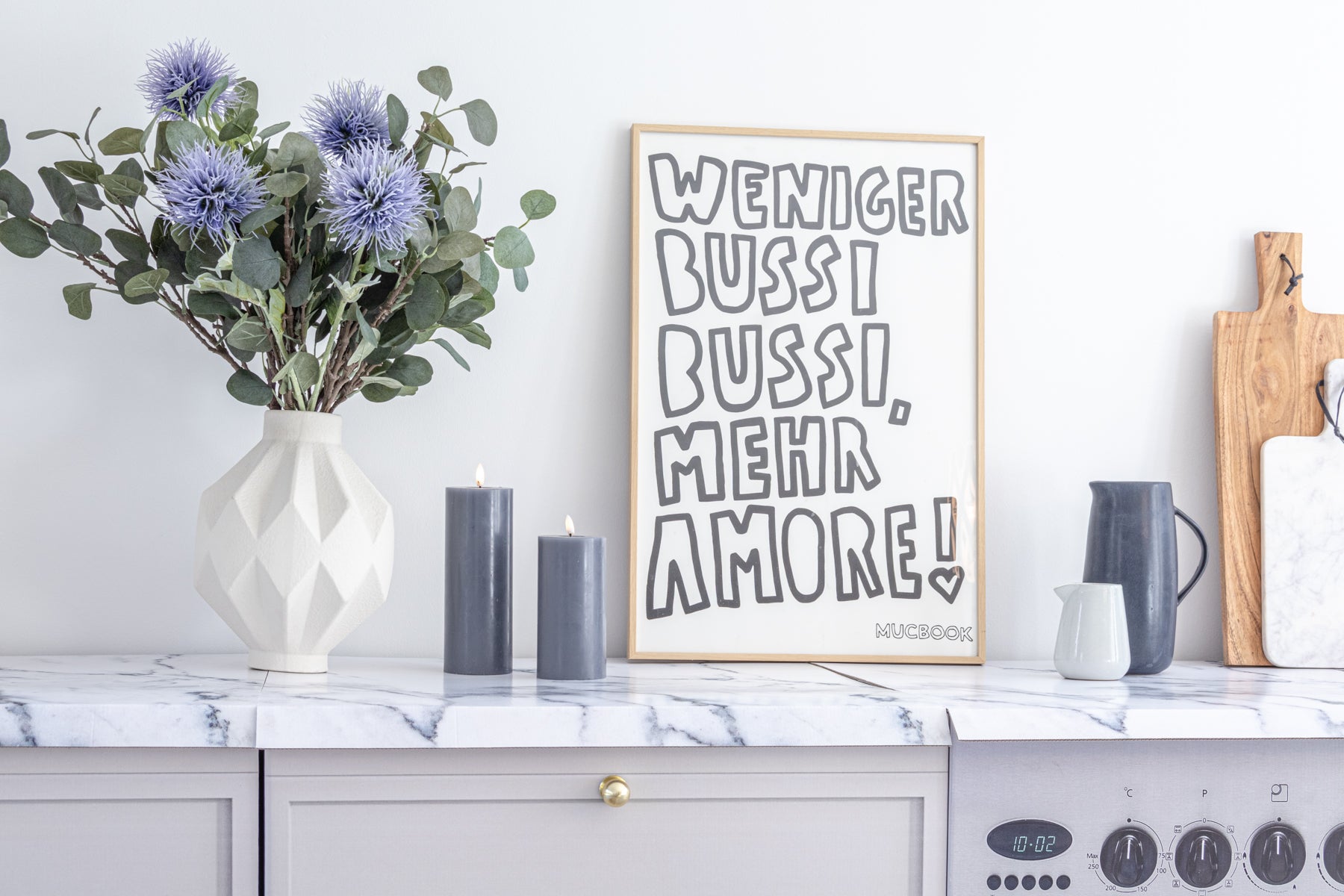 Keine leeren Räume, keine unschönen Anschlüsse und Wasserrohre an der Wand: die Küche wird mit unseren Küchenblöcken aus Kartonage perfekt in Szene gesetzt.